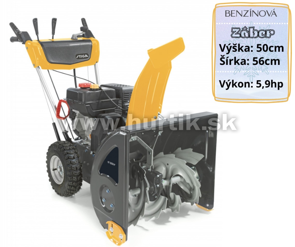 Vďaka powerful 4-taktovému motoru STIGA ZS 210 o objeme 212 cm³ s výkonom 4,4 kW dokáže bez problémov odpratať ajnahromadený ťažký sneh. Kľúčovou prednosťou tejto frézy je dvojstupňový systém odstraňovania snehu, ktorý zaručuje maximálnu efektivitu. Oceľový šnek s pílovými zubami bezpečne zachytáva a rozdrví nahromadený sneh, ktorý je následne vyhadzovaný až do vzdialenosti 10 metrov.