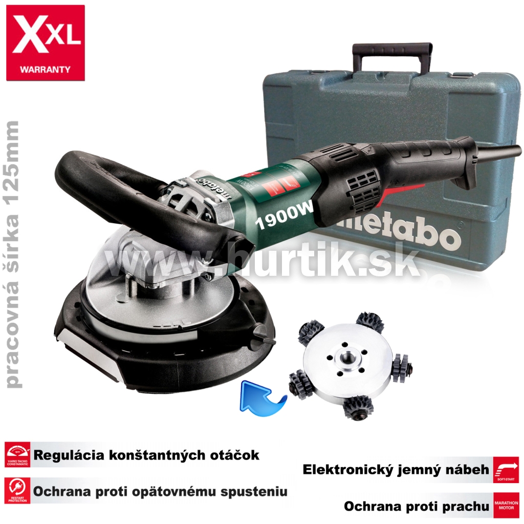 Kompaktná a ľahká renovačná fréza Metabo so 125mm frézovacou hlavou pre nepretržité nasadenie v prevádzke. Určená na odstraňovanie - omietky, zvyškov lepidla, starých náterov na stenách, stropoch či podlahách. Vďaka závitu M14 a maticiam je možné na frézu nasadiť aj brúsne diamantové kotúče s priemerom 125mm ktoré sú určené na odstraňovanie betónu a rôznych povlakových náterov.