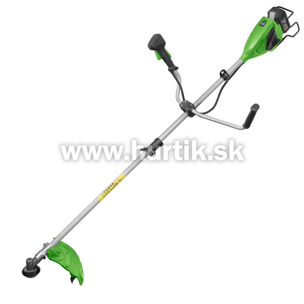 Bezuhlíkový motor, obojručná rukoväť (riadidlá), deliteľná tyč. Súčasťou balenia: batéria 40V 4Ah, nabíjačka, pílový kotúč, popruh, ochranný rám, strunová hlava s priemerom 2,4 mm a montážny kľúč. Pracovný záber 420mm. Otáčky (/min): 0–4500/5500.