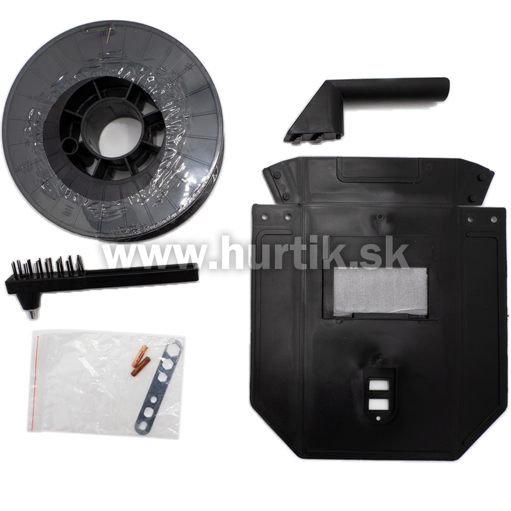 Súčasťou dodávky je horák MIG, zvárací štít, káble, zvárací drôt 0,8 mm (5 kg cievka). LCD displej Rozsah regulácie prúdu (A) 20-160 Zaťažiteľnosť. Priemer drôtu (mm) 0,6-1,0 Hmotnosť (kg) 14