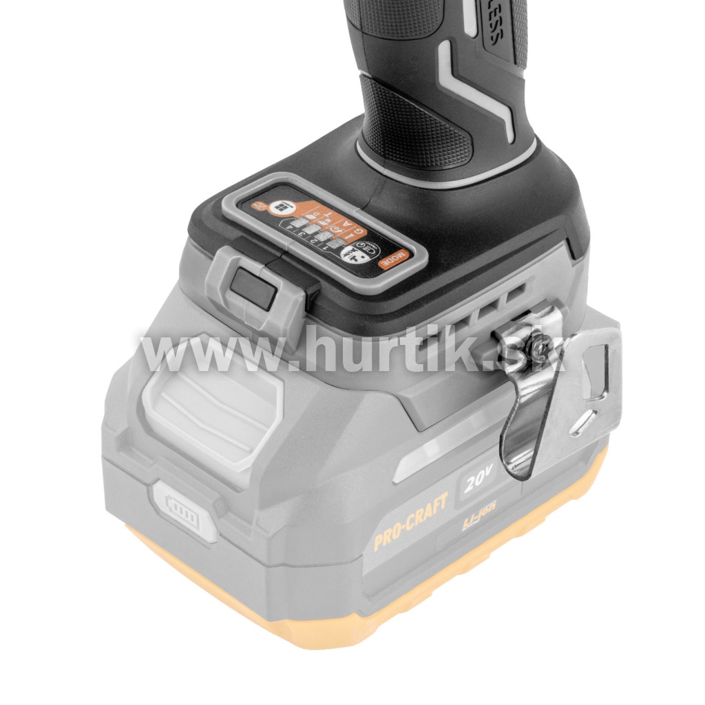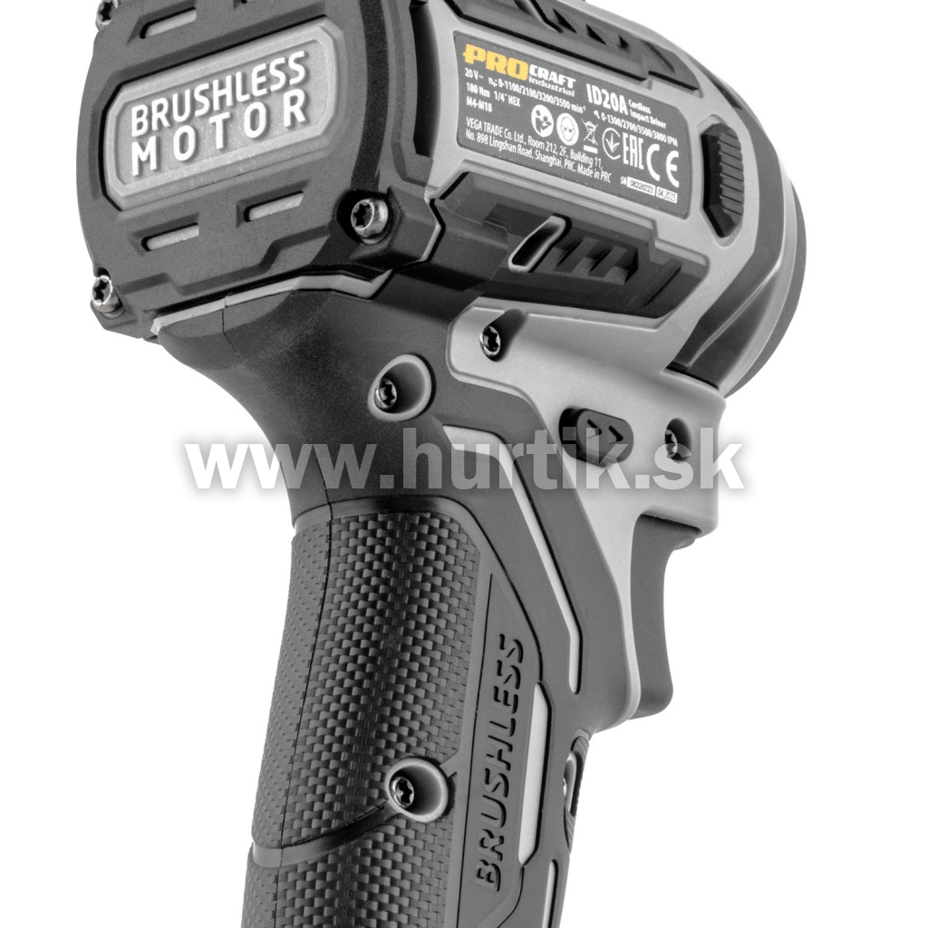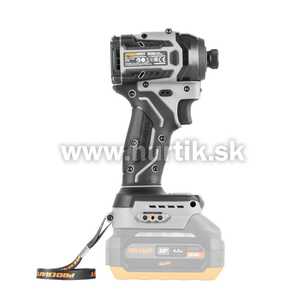 Aku rázový uťahovák Procraft ID20A s bezuhlíkovým motorom, krútiacim momentom až 80–180 Nm a štyrmi rýchlosťami (0–3800 ot./min). Vybavený LED osvetlením a funkciou dotykového prepínania režimov. Ideálny na profesionálne použitie.