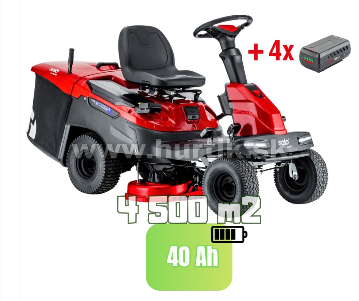 4 batérie (36 V/8 Ah) a nabíjačka sú súčasťou balenia.
